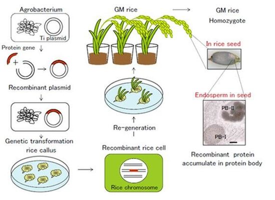 ウーハンHealthgen Biotechnology Corp.のOryzHiExpは米の内乳の特定の表現のプラットホームである。分子生物学、遺伝子工学およびDNAの組換えの技術の使用を使って、